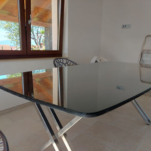 Staklo se prilagođavamo vašim dimenzijama i raznim oblicima stolova, možete odabrati prozirno, tonirano ili lakirano staklo.